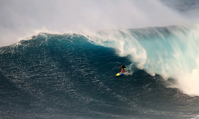 3. Jeff Rowley rides a massive wave in Hawaii