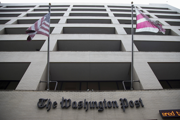 The Washington Post headquarters in Washington, D.C. The paper’s report about purportedly pro-Russian propaganda sites implicated more than 200 sources from various points across a wide range of the political spectrum. (Evan Vucci / AP)