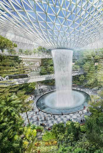 Safdie Architects and PWP Landscape Architecture are creating a spherical “air hub,” a 134,000-square-meter bio-dome, in the center of Changi so even brief visitors passing through Singapore will get a sense of this garden-city as they walk through the interior landscape.