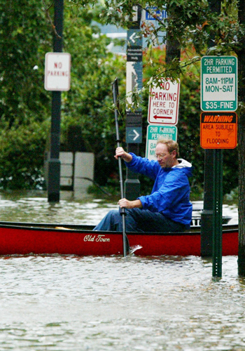 Old Town Alexandria was hit hard during Hurricane Isabel in 2003. According to The Washington Post, flooding from the Potomac River swamped the historic Torpedo Factory and many areas around King Street. Along Alexandria’s waterfront, streets were navigated by canoe and kayak, as water levels reached nearly 9 feet above sea level. More recent storms, such as Hurricane Irene in 2011, were also devastating. Long-term, Alexandria’s Potomac waterfront will experience sea level rises of more than 2.3 to 5.2 feet by 2100 — according to the Waterfront Small Area Plan — and certain areas of the city now flood at least once a month, so OLIN made flood mitigation a high priority in the master plan.