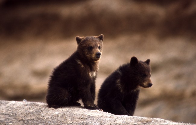 Two grizzly bear cubs in Yellowstone National Park (image: National Park Service)