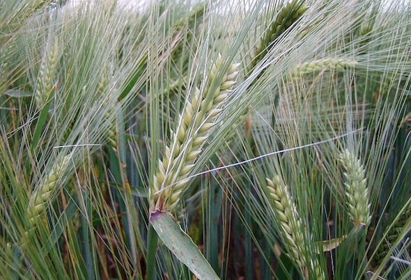 Ears of winter barley ripening in a field in Belgium. (raul.dupagne via Wikimedia Commons)