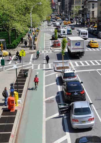 As more communities invest in green, treatment complete streets to create environments that are both safer and more accessible for pedestrians and bicyclists, medicine there are growing problems for those who must move goods, said Peter Plumeau, Resource Systems Group, at the Transforming Transportation conference in Washington, D.C. Complete streets by their definition must accommodate all users, but they aren’t doing as good of a job in accommodating trucks and delivery vehicles, which are critical to goods movement, argues Plumeau. For example, curb extensions, which have many benefits, are a great way to block access for a truck. And more people-friendly roundabouts, which feature tighter streets, are becoming a nightmare to get around. Plumeau said the answer is more creative thinking about how to move goods.