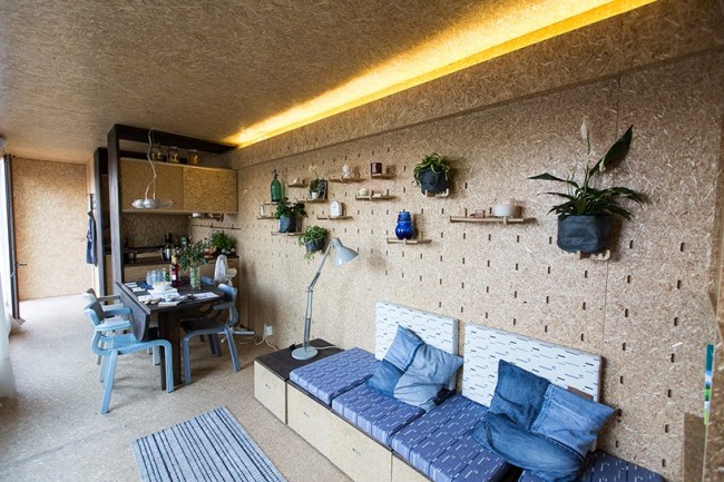 SvK: I think you’re absolutely right. because sustainability is hard to quantify it can be used by a wide range of producers and developers far too easily. in our vision sustainability consists of both social and enviroemental aspects. on the social spectrum we want to build housing for people that cant afford to live comfortably and flexible at the moment. regarding environmental issues our vision goes even further. we strive to build a house that is not only fully self sufficient and sustainable in use, but also has a minimal impact in the construction process itself. in order to do this we harvest rainwater and filter it, we have one of the worlds first mobile systems to locally treat waste water and we have enough energy to go the year round without ever needing to use fossil fuels (even in the Dutch winter!). during the build we try to use the most sustainable materials that we can find. for example, we use a second hand shipping container and build the whole interior out of ecoboard, a plating material that consists solely out of compressed reed. in this sense, we differ from housing that uses lots of materials to make the home energy efficient (e.g. lots of extra glass, concrete, and insulation), but is not necessarily more sustainable, because extra energy is expended in the production of the home. for us, it’s about building homes with the least impact on the environment, both in production and during its lifetime.