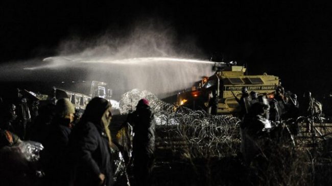 Water Protectors are throwing rocks, and law enforcement disproportionally retaliates with all sorts of “Non-lethal” ordinances such as water cannons, lead-filled beanbags, and explosive teargas grenades. According to Ziegler, it’s ok because “it was effective, wasn’t it?”