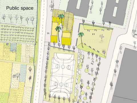 The project, dubbed “Improvistos” and conceived by María Méndez and Gonzalo Mancebo, is located in Alfafar, a suburb 4km outside the Valencia city center. Following the collapse of its timber-industry, Alfafar hit hard economic times. Houses that cost $150K decades ago are now fetching $20K, and vacancy rates are high. Méndez and Mancebo’s proposal takes the high density Barrio Orba area of Alfafar and employs the principles of co-housing, facilitating the easy exchange of human, architectural and material resources.