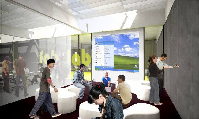 The vision for a classroom in the Ennead Lab project Startup Box: South Bronx displays the evolution of entrepreneurial and educational incubator spaces.