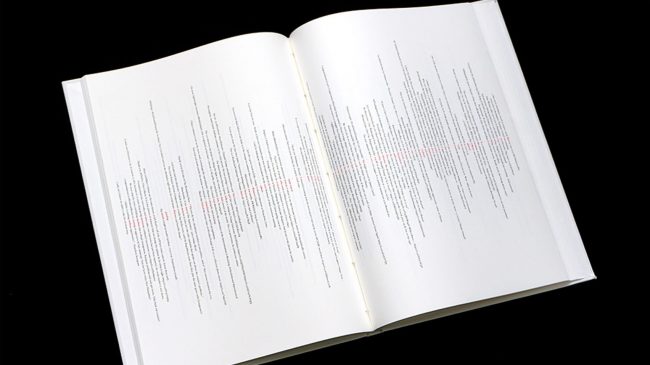 Originally, the designer wanted to exhibit the project as a fifteen-metre scroll, hinting at both ancient reading methods and the present-day scrolling of webpages.