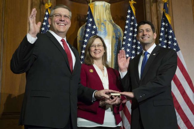 Rep. Barry Loudermilk (left), a Georgia Republican seen here in January with House Speaker Paul Ryan (right), is among lawmakers who say its time Congress provide more oversight of the Federal Election Commission, which has for years been beset with internal troubles.