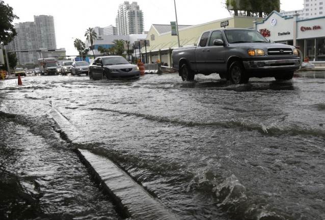 Miami streets see heavy flooding from rain in September 2014. Some neighborhoods flood regularly during deluges or extreme high tides.