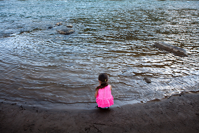 Emersen Sud crouches along a bank of the Animas River, in Durango, Colorado, August 14, 2015. A recent accident that leaked a toxic yellow plume of sludge from the Gold King mine into the Animas River heightened a debate over the future of this region’s old mines. (Photo: Mark Holm/The New York Times)