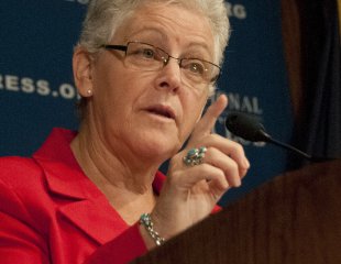 Then-EPA Administrator Gina McCarthy speaks to the National Press Club on climate change and power plants on September 20, 2013, in Washington, D.C. The EPA’s Office of Environmental Justice has funded projects to address the impact of pollution on minority and low-income communities.