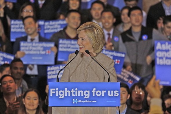 Democratic Presidential candidate Hillary Clinton speaks to Asian American and Pacific Islander (AAPI) members in San Gabriel, Calif. on Jan. 7, 2016. (Joseph Sohm / Shutterstock)
