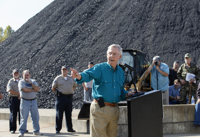 Sen. Mitch McConnell (R-KY) at a Kentucky coal transport facility the final week before the 2014 midterm elections.