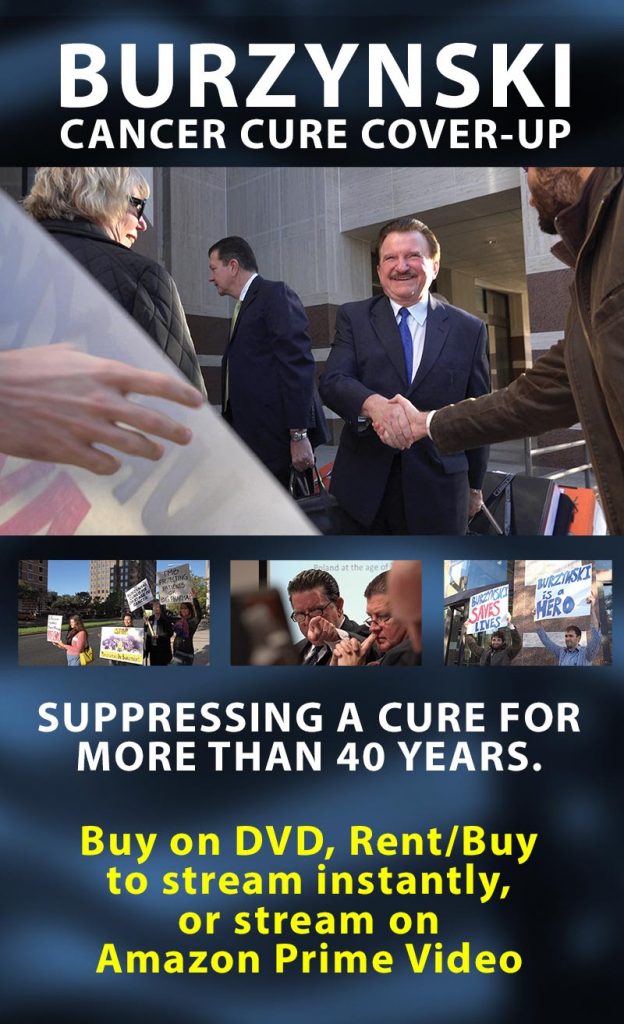 BURZYNSKI: CANCER CURE COVER-UP (the most up-to-date documentary about the Burzynski saga) is available to stream, free for Prime members, rental for non-members AMAZON USA, AMAZON UK, AMAZON GERMANY, and AMAZON JAPAN. If you do not live in those countries, you can also watch it on VHX. |