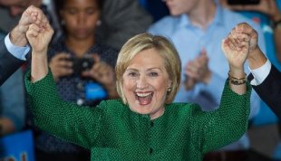 Former US Secretary of State Hillary Clinton at a campaign rally for Maryland gubernatorial candidate Anthony Gregory Brown and running mate for Lt. Governor Ken Ulman on October 30, 2014 in College Park, Maryland