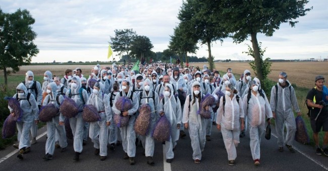 Early in the morning of 15 August, approximately 1,500 people set off from the climate camp in Germany’s Rhineland to try and enter one of the vast open-cast lignite mines in the area and block the massive excavators. The Rhineland coalfields are the biggest source of CO2 emissions in Europe. (Photographer: Ruben Neugebauer)