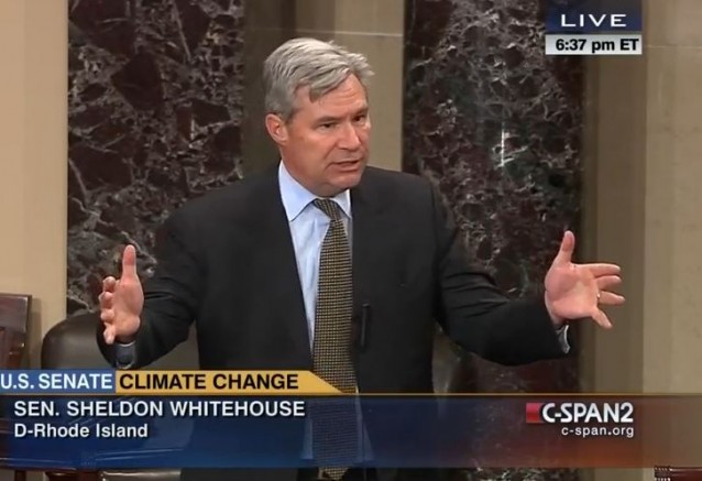 Sen. Sheldon Whitehouse (D-RI) rips into Sen. Jim Inhofe (R-OK) for blocking a resolution that would have acknowledged the reality of climate change.
