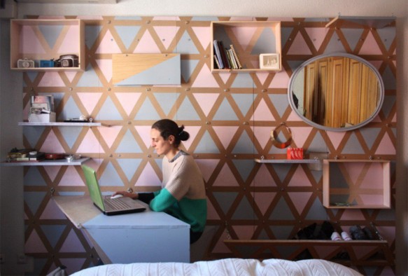 Back in the day, at least in many industrialized nations, there was an expectation that children graduate from school, leave home to go to school or get a job. After that, maybe they’d live and work in the city for a while before finding a nice guy/gal to settle down with and have their 2.7 kids. Rinse, repeat. In the last decade or two, these expectations have been pretty much upended. Ever-weakening job markets coupled with high housing costs around the globe have led many Gen-Y’s and Millennials to never leave their folk’s home or return there at regular intervals due to limited economic resources and opportunity (the latter often referred to as the “boomerang generation”). Spain, like many countries, has nearly half of its young adults (18-29 year olds) living with their folks. Putting aside the sociological implications of this situation, there is a definite design challenge here: many of these people are occupying childhood rooms designed for childhood or adolescent needs. Spain’s PKMN [pacman] Architecture (the firm behind the All I Own House) in collaboration with the Tricontinental Master Degree program thought they’d to try and tackle this latter challenge with HOME BACK HOME. They are reinventing the “kid’s” room in a way that reflects the specific needs of their occupants’ advanced station in life as well as the general change in household demographics.