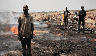 People burning electronic scraps at the Agbogbloshie e-waste dump in Accra, Ghana. The Guardian described the fumes as “head-pounding.” (Photo Credit: Bit Rot Project)
