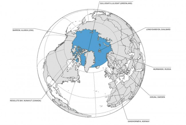 Over in Norway, at the Tromsø Academy of Landscape and Territorial Studies, Janike Kampevold Larsen leads Future North, a kind of mapping project of Nordic Arctic communities through the application of different media tools. Larsen’s curriculum is hinged on “territorial management,” an umbrella concept that outlines the actual space of the Really Existing Arctic, mapping the High North’s tractable lands and, perhaps more valuable, its increasingly monitored sea passages. “Part of our work insists on stressing the ‘normality’ of many Arctic and Subarctic settlements,” Larsen says. “The landscape architects we produce at the academy are trained to consider large-scale interventions that facilitate and remediate the meeting of vulnerable landscapes and heavy industries.” The agenda is pragmatic, shying away from speculative design, and its contents owe more to field research than to traditional architectural protocol. The group has operated in areas of Scandinavia and the Kola Peninsula, collecting ecological data about existing industrialized regions as these towns and cities deal with both dwindling populations and production. Most mining and petroleum activities will be relatively short term, Larsen says, referring to the region’s chief industries. “We like to think of ourselves as present-day explorers of areas that are already known, already formed, but that are reshaping and need to be anticipated in a way.”