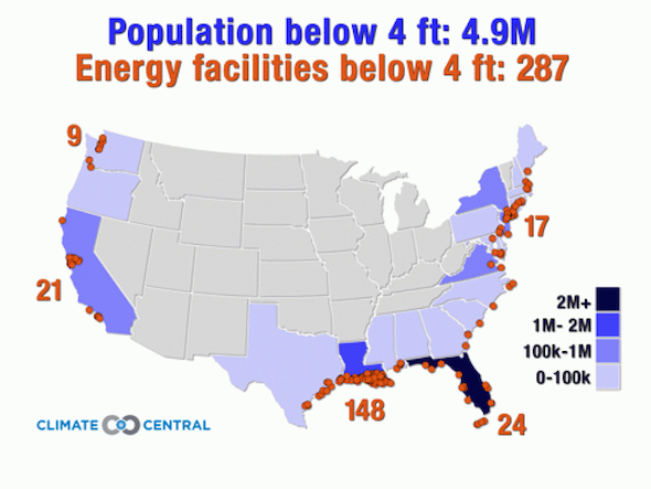 Here are the coastal communities in the U.S. at risk just from a four feet ocean level rise: