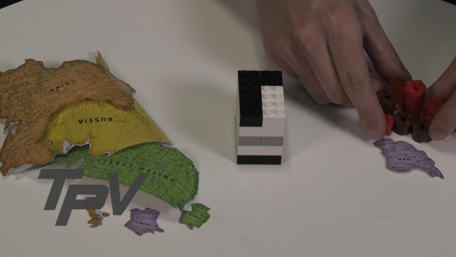 The West — specifically the United States, the U.K., Russia, China, Germany and France — has long suspected that Iran is pursuing nuclear weapons and has imposed tough economic sanctions to pressure the Iranian government to abandon this pursuit. This lego wall represents those sanctions, which have significantly isolated Iran and brought it to the negotiating table.