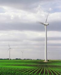 Wind turbines run on farm land in Trimont, Minn. Iberdrola Renewables will build a similar wind energy farm near Elizabeth City, N.C. (Iberdrola Renewables LLC, AP)