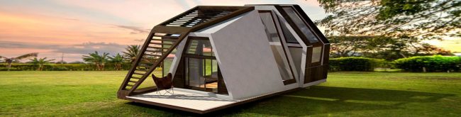 The Mobile Home is a prefab modular construction that is wide enough to fit on a freight-liner truck bed, making delivery ultra-convenient. The home is compact, approximately 150 square feet, and comes with all of the basic necessities, including a selection of furnishings. The compact house is a unique shape, almost completely covered in glass panels. Adding to its charm is a lovely open-air deck that leads into the interior.Related: Inhabitat spends the night in a Harvard-designed tiny cabin in the woods