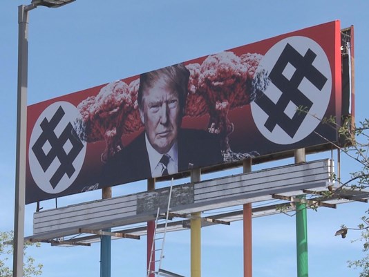 The Trump billboard went up Friday at 11th Avenue and Grand, to coincide with the start of the annual three-day Art Detour event in downtown Phoenix. Moore said it would remain up as long as Trump is president.