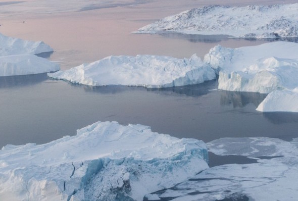 An aerial view of icebergs in Greenland’s Ilulissat Icefjord. (Mark Garten/UN Photo)
