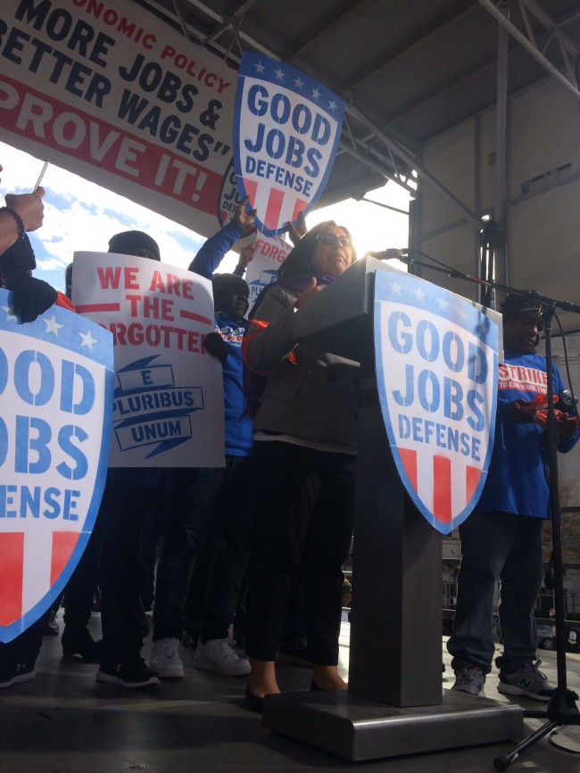 Actor and activist Danny Glover told the crowd, “We know that we have to support good jobs AND defend good jobs. … We’re ready to fight in the winter. We’re ready to fight in the summer.”