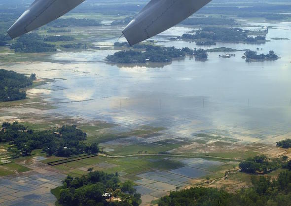 An aerial view of Bangladesh shows the impact of flooding on arable land. (Richard P J Lambert via Flickr)