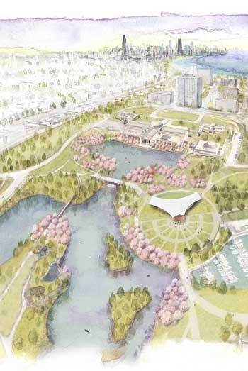 Meanwhile, no word yet from the Obamas and Chicago city government as to whether they will take a piece of Jackson Park or nearby Washington Park for the $500-million Obama presidential library. In May, word leaked from the Obama library foundation that one of these two Olmsted-designed historic parks will be the future site, to the dismay of historic preservation and park advocates.